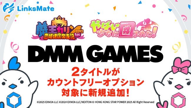 MVNOサービス「LinksMate」が、2025年6月12日(木)より『DMM GAMES』で配信中の2タイトルをカウントフリーオプションの対象に追加する。