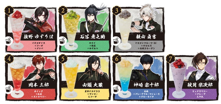 コラボドリンクは、「佐野 ゆずりは」など7人のキャラクターをイメージした全7種。