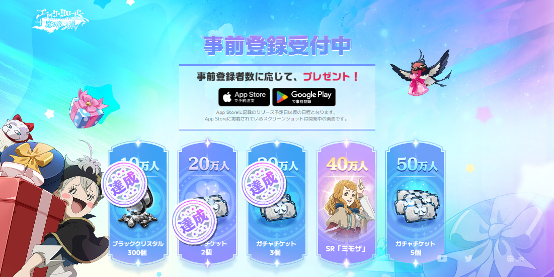 - 「ブラッククローバーモバイル 魔法帝への道 The Opening of Fate」の事前登録者数が30万人を突破