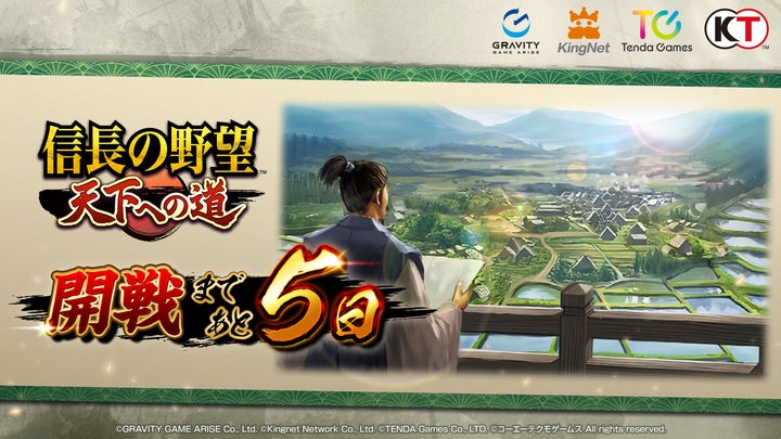 グラビティゲームアライズ株式会社は、スマートフォン向け新作MMO歴史戦略シミュレーションゲーム『信長の野望 天下への道』のリリース直前生放送を2025年6月17日(火)20:00よりYouTubeとXにて配信する。