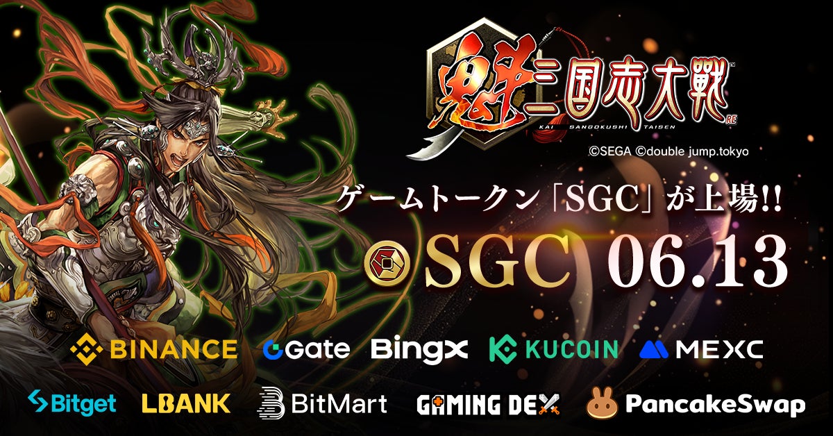 double jump.tokyoが開発・運営する新作三国志ゲーム『魁 三国志大戦 -Battle of Three Kingdoms-』のゲーム内通貨「SGC」が、2025年6月13日にBinance Alphaを含む海外大手10取引所に上場決定。