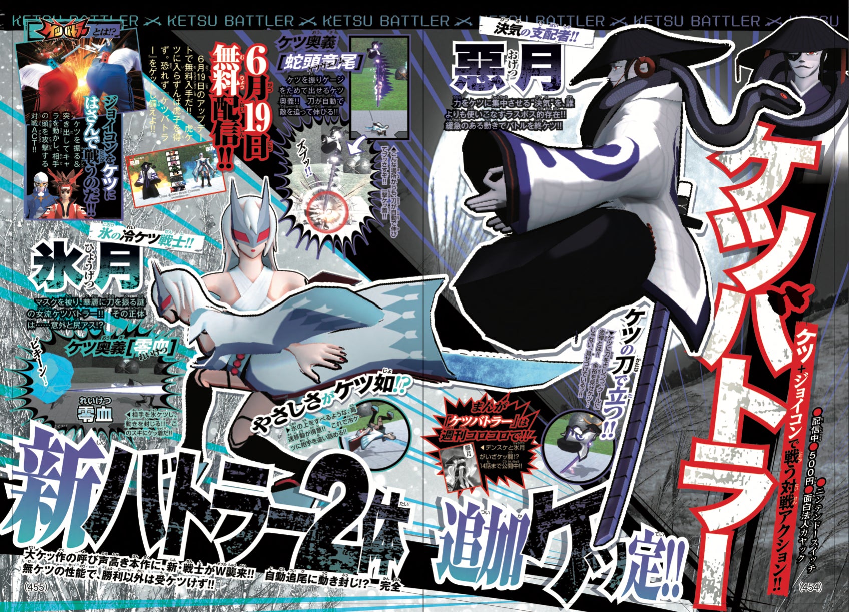 週刊コロコロコミック連載の漫画『ケツバトラー』に登場するキャラクター「惡月(おげつ)」と「氷月(ひょうげつ)」がゲームに参戦する。