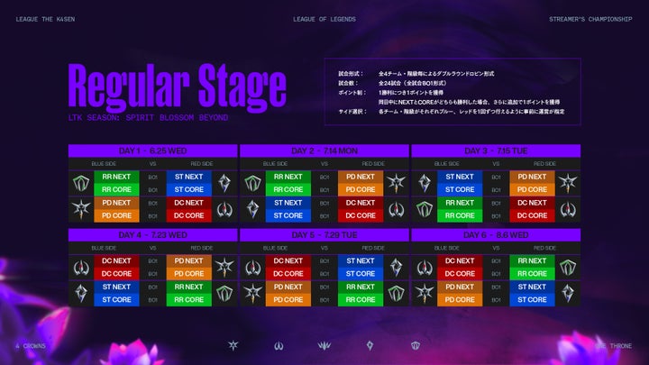 2025年6月25日から8月27日までの2か月間、「LTK シーズン: 精霊の花祭り 幽明の境」と題し、レギュラーステージ6日間、プレイオフ2日間の全8日間で開催される。