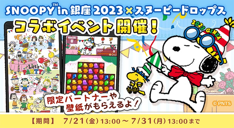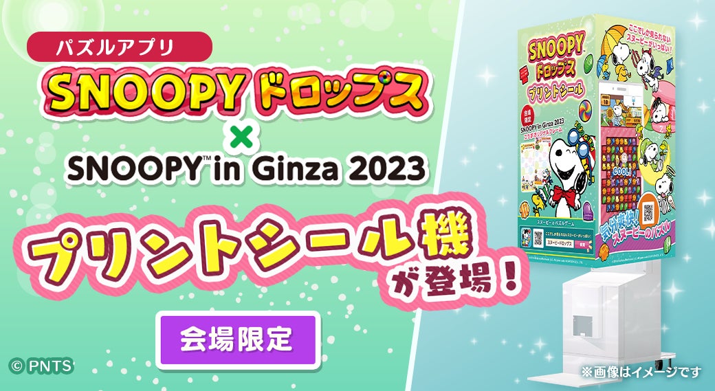 2023年の銀座で開催されるイベント「スヌーピー in 銀座 2023」には、パズルゲームアプリ『スヌーピードロップス』のプリントシール機が登場します。