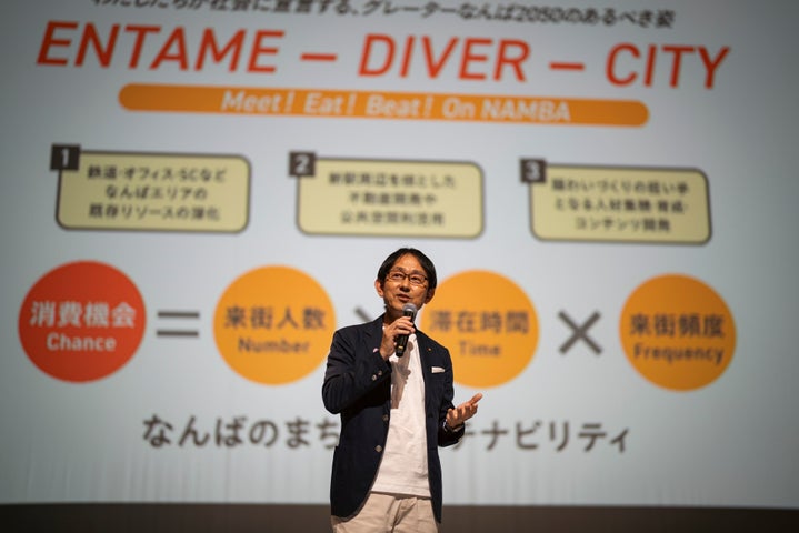 大阪・なんば地区のデジタル技術を活用した「未来都市化」構想も発表され、「デジタルエンターテインメントシティ構想NAMBA」の具体的なプランも披露されました。