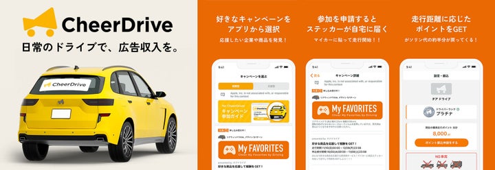 チアドライブは、愛車にステッカーを貼って走行することで報酬が得られるサービスです。