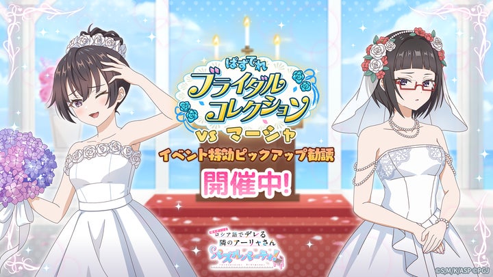 TVアニメ「時々ボソッとロシア語でデレる隣のアーリャさん」のスマホ向けパズルゲーム『時々ボソッとロシア語でデレる隣のアーリャさん パズルパーティ!』(ぱずでれ)で、ウェディングドレス姿の有希と沙也加が登場する特効勧誘が開催。