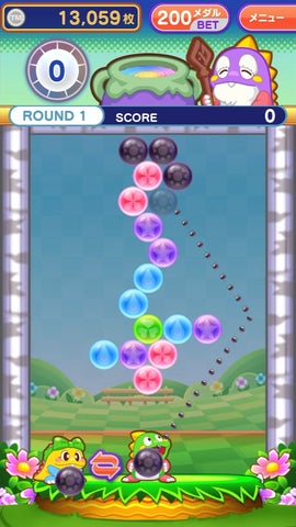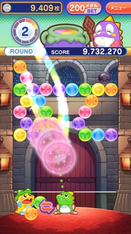 • メダルゲームで、バブルを壊すと抽選でメダルや特殊バブルを獲得できる。