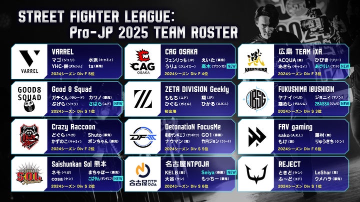 カプコン公式チームリーグ戦「ストリートファイターリーグ: Pro-JP 2025」の新情報が公開された。
