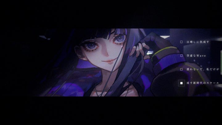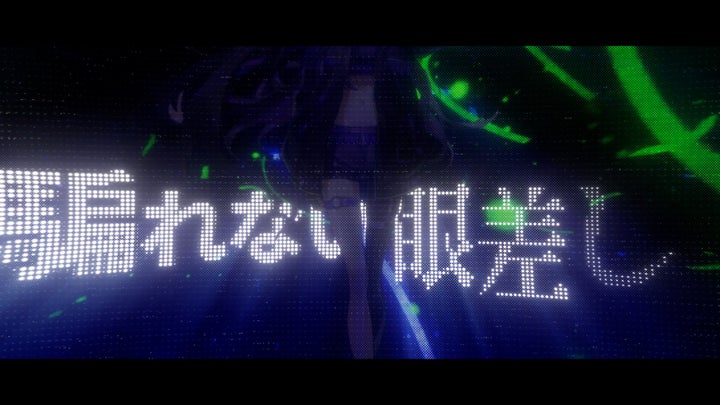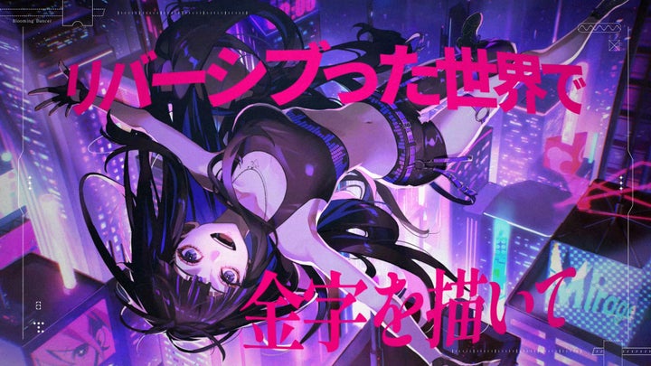 MVでは紫を基調としたネオンカラーの街並みを背景に、Ibukiが宙に浮いている。