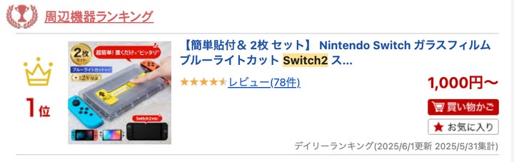 - Nintendo Switch2用保護ガラスフィルム「モンスターフィルム」が楽天ランキング1位を獲得。
