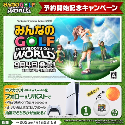 - 『みんなのGOLF WORLD』のダウンロード版予約が開始された。