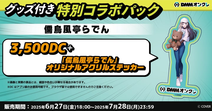 DMMオンクレで、hololive DEV_IS所属VTuber「儒烏風亭らでん」の特別セレクトフェアが開催される。