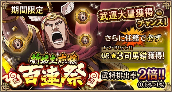 キャンペーンでは、新城主向けの積み荷パック販売、争覇戦★6追想ガチャ、桓騎軍★4ランクアップガチャ、新城主応援百連祭ガチャ、総司令の懐刀イベントなどが開催されます。