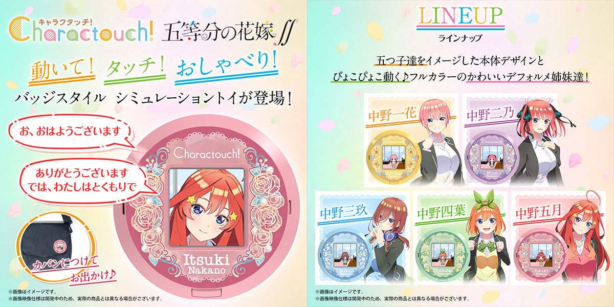 この新しいシミュレーショントイは、中野家の五つ子たちとコミュニケーションが取れるバッジスタイルのアイテムです。
