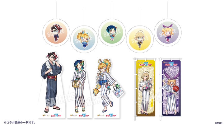 お風呂上がりの浴衣姿の描き下ろしイラストを使用したグッズ販売、コラボメニュー、コラボ風呂、館内放送など、モンストの世界観を体験できるイベントが盛りだくさん。
