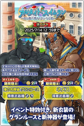 SSR魂友「渚の名探偵 グランルース」とSSR神器「ネメス」が入手可能な期間限定ガチャや、お得なスペシャルパック、ログインボーナスも実施される。