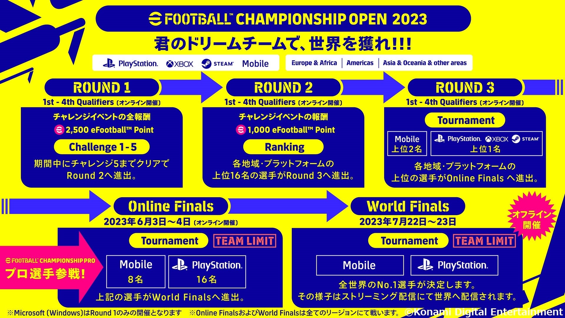 株式会社コナミデジタルエンタテインメントは、7月22日(土)と23日(日)に東京・銀座で開催されるeスポーツ世界大会「eFootball™ Championship Open 2023 World Finals」を発表しました。