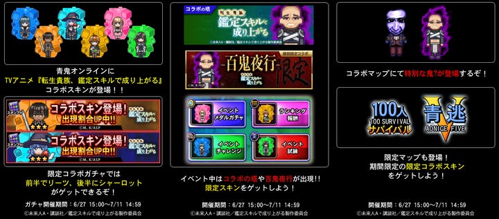 - 『青鬼オンライン』とTVアニメ『転生貴族、鑑定スキルで成り上がる』のコラボイベントが開催。