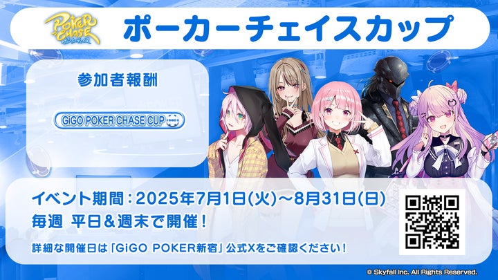 GiGO POKER新宿と、バトロワ式オンラインポーカーゲーム「ポーカーチェイス」のコラボイベントが2025年7月1日(火)から8月31日(日)まで開催されます。