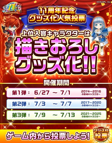 11周年記念グッズ化人気投票では、全3回の投票で選ばれたキャラクターのグッズが販売されます。