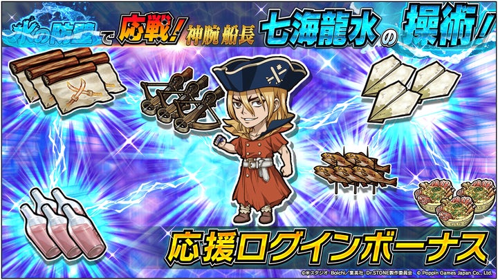 - 『Dr.STONE バトルクラフト』にて新イベント「水の防壁で応戦!神腕船長七海龍水の操術!」開催。
