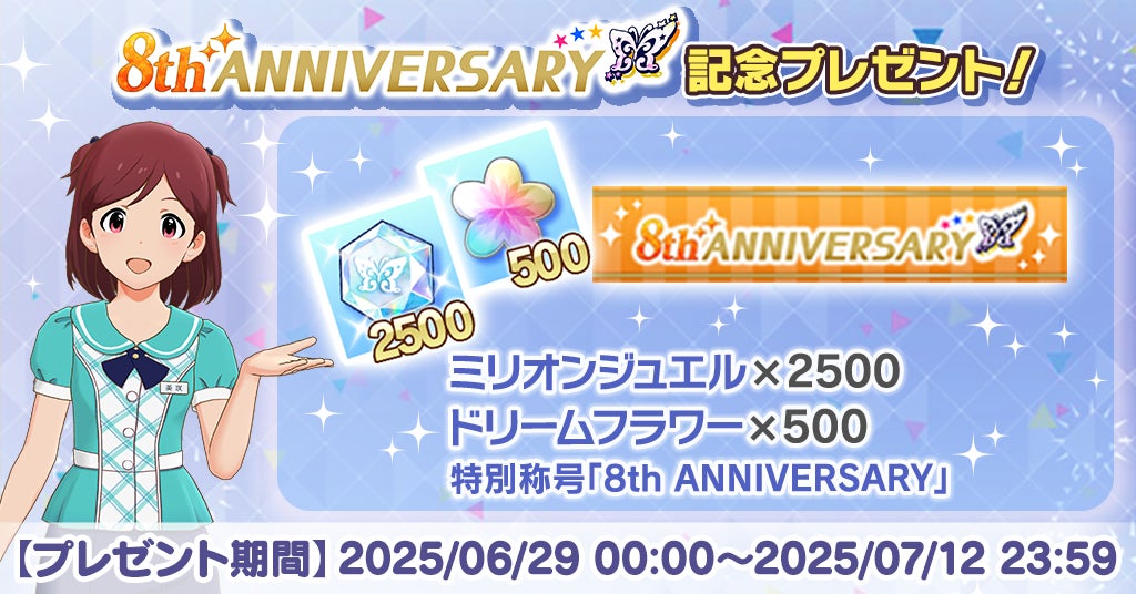2025年6月30日(月)19:00からは8周年記念生配信も実施される。