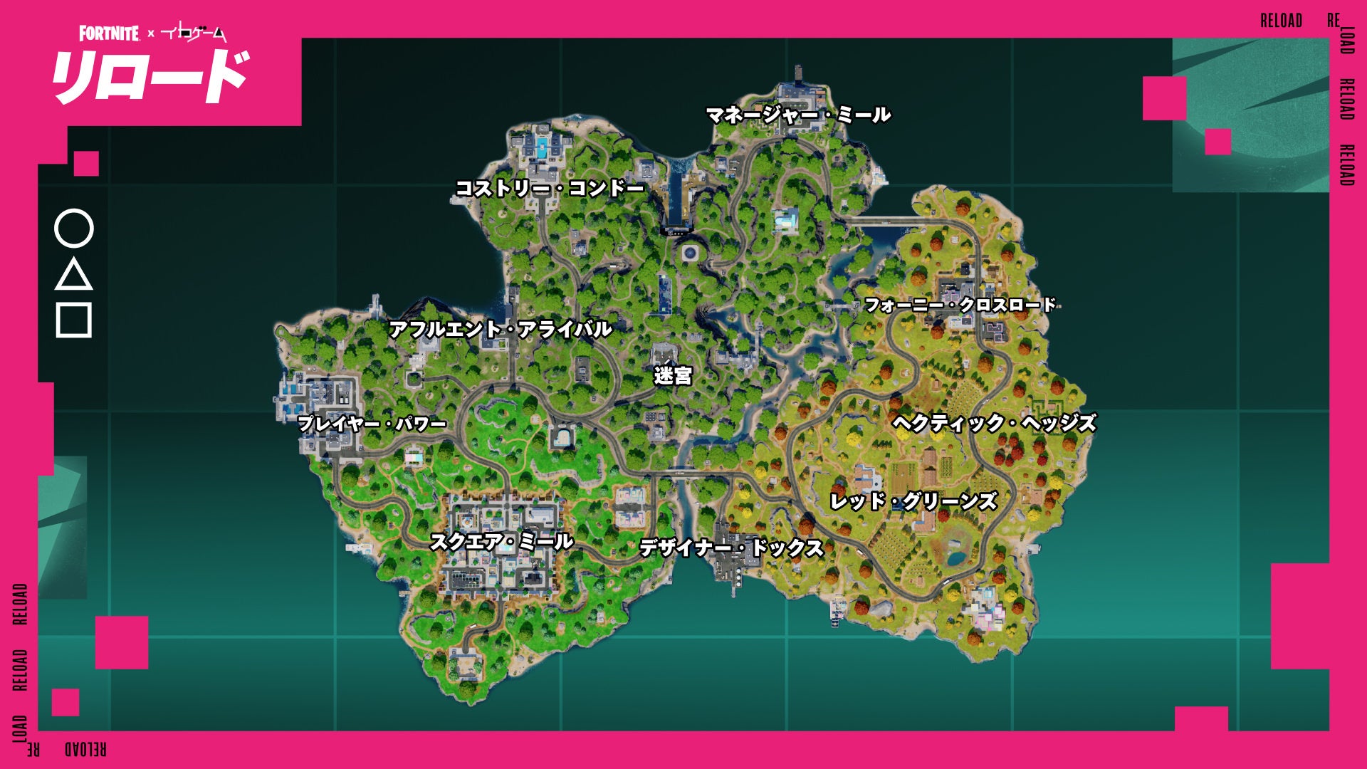 フォートナイト リロードでは、イカゲームをモチーフにした新マップ「イカグラウンド」が登場し、サバイバル戦が繰り広げられます。