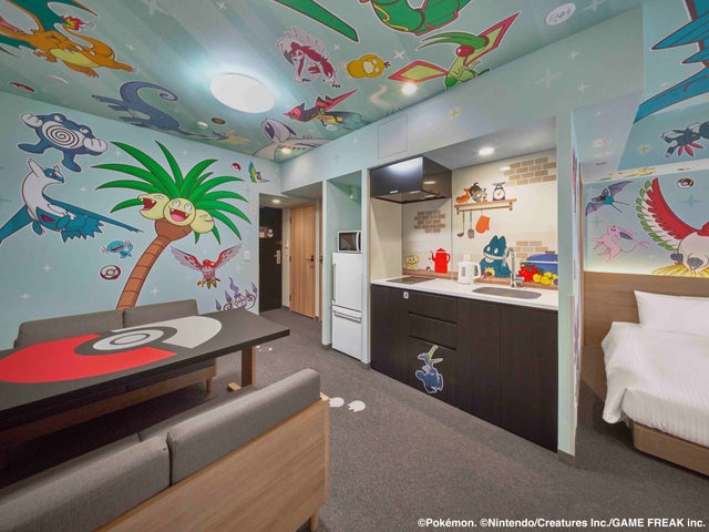 - 客室は100匹のポケモンが登場するデザインで、バスルームやキッチンにもこだわり。
