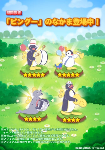2025年6月30日から7月23日までの期間限定で、ピングーをモチーフにしたデコや、ピングーとなかまたちのキャラクターがゲーム内に登場します。