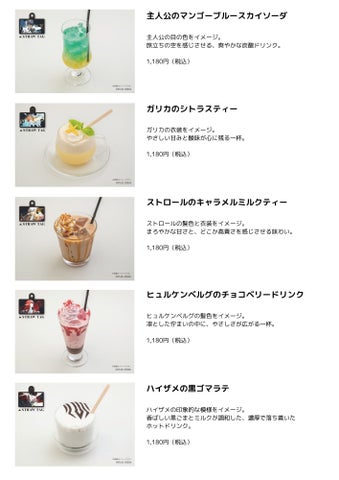 展示会と連動したこのカフェでは、ゲームの世界観を再現したオリジナルメニューや、キャラクターをイメージしたドリンクが提供される。