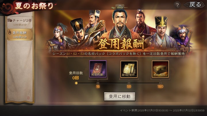 7月3日からはログイン報酬、夏日品茶、英雄集結、祈願吉祥、城観奇景などのイベントも開催。