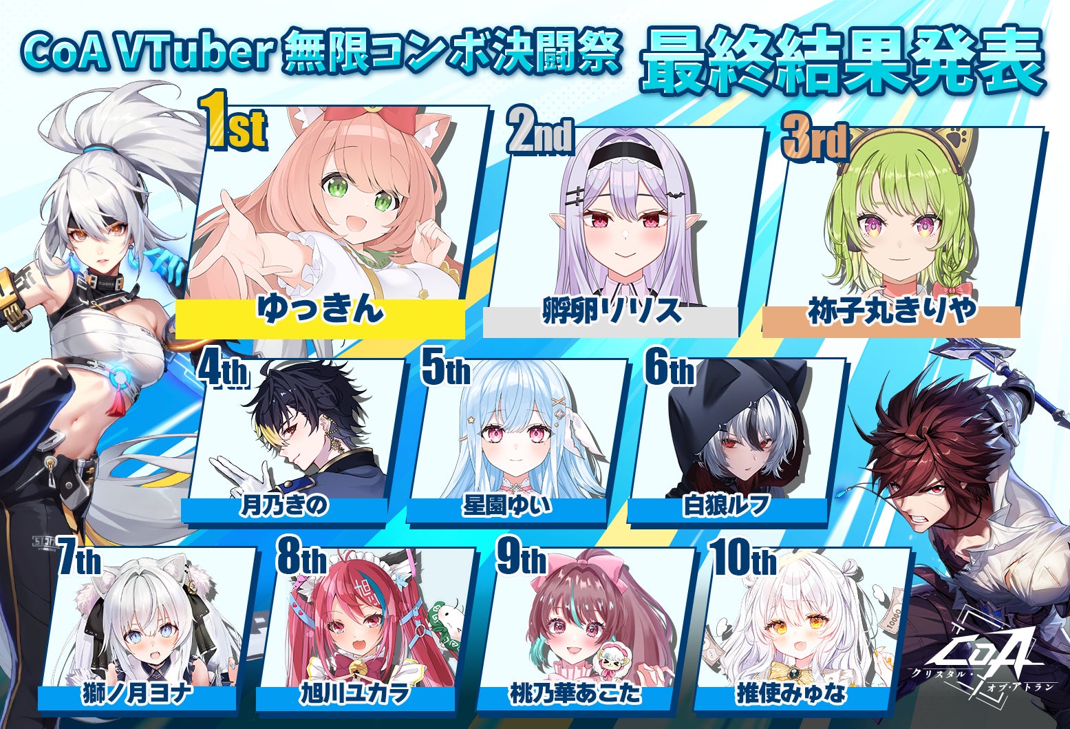 - 『クリスタル・オブ・アトラン(CoA)』のVTuberイベント「CoA_VTuber 無限コンボ決闘祭」が開催。