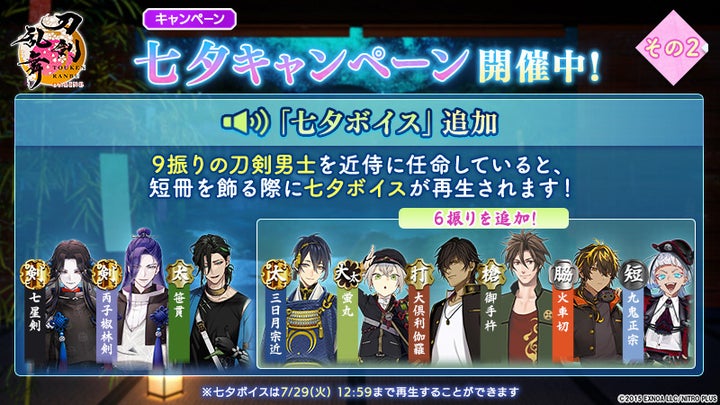 期間限定の鍛刀キャンペーンでは「七星剣(cv.川島零士)」が登場します。