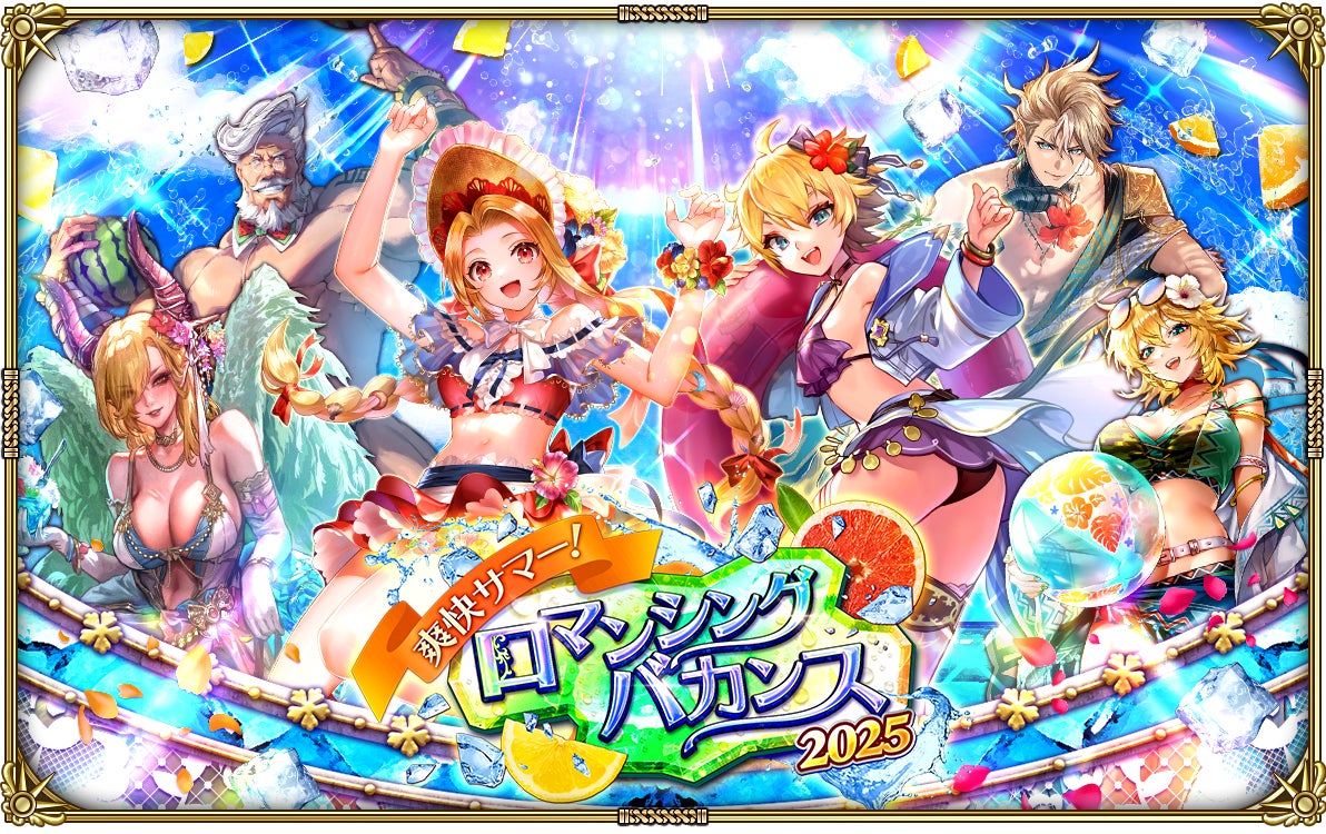 2025年7月1日より、期間限定イベント「快晴ときどき山盛りスイカ!?」、Romancing祭、ログインボーナス、夏福袋、ミッション、闘者の関門の新ボス、大聖石の洞窟交換所の報酬追加など、多数のキャンペーンが実施されます。