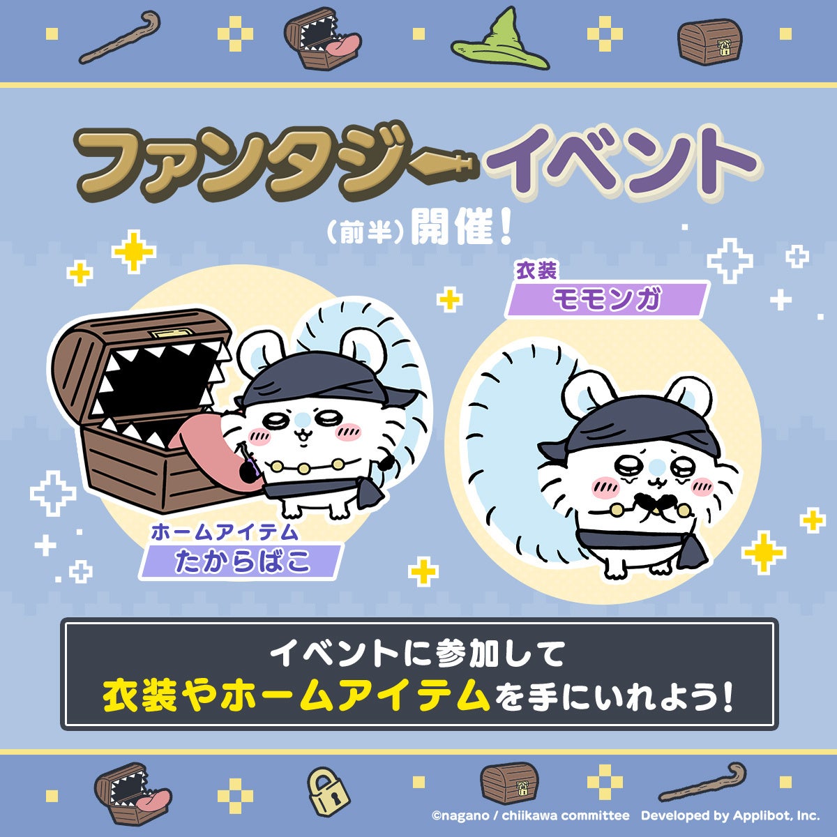 ファンタジーイベントでは、モモンガの衣装やホームアイテムを入手可能です。