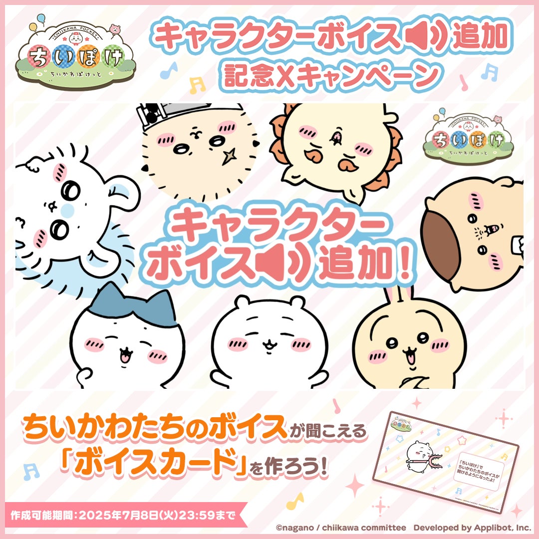 - 『ちいかわぽけっと』にキャラクターボイスが2025年7月1日に実装。