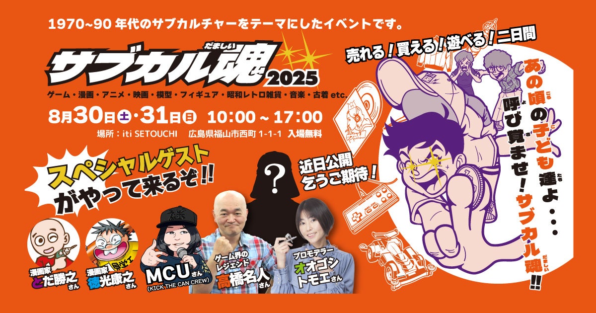 - 2025年8月30日(土)・31日(日)に福山市で「サブカル魂2025」開催。