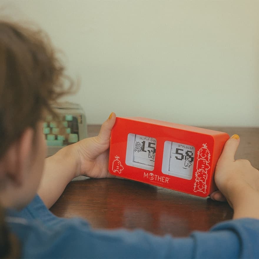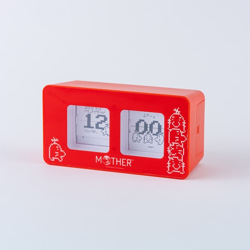 どせいさんのパタパタ時計は、MOTHERレッドのボディに、どせいさんの様々な表情が楽しめる。