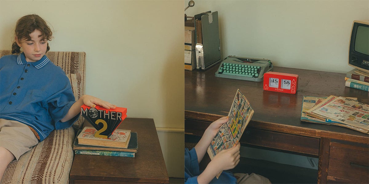 - 『MOTHER2』ロゴの立体フィギュアとどせいさんのパタパタ時計が登場。