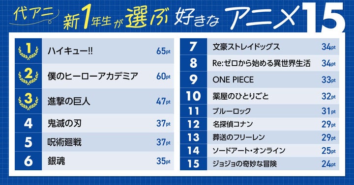 代アニ新入生が選ぶ!好きなアニメ1位は「ハイキュー‼」