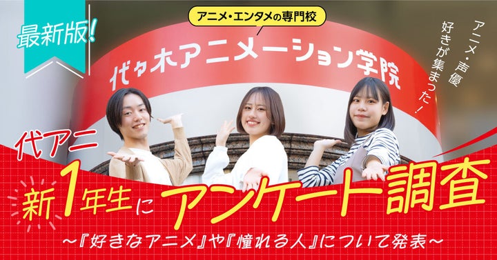 代々木アニメーション学院(代アニ)の新1年生を対象とした調査結果が発表されました。