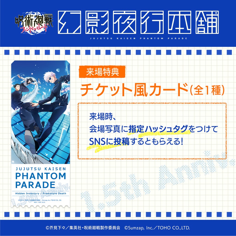 1.5周年を記念し、『懐玉・玉折』を含む新商品の先行販売や、購入特典、来場特典も用意。