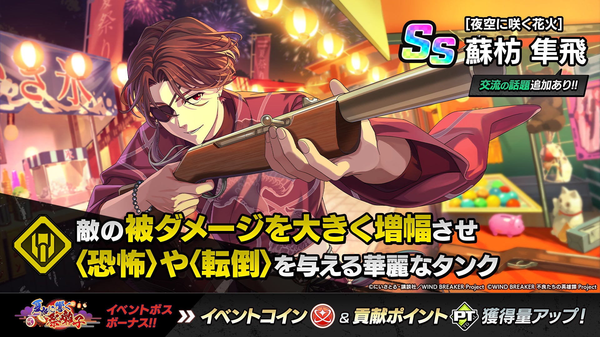- 『WIND BREAKER 不良たちの英雄譚』にて期間限定イベント「夏夜に響く祭囃子」を開催。