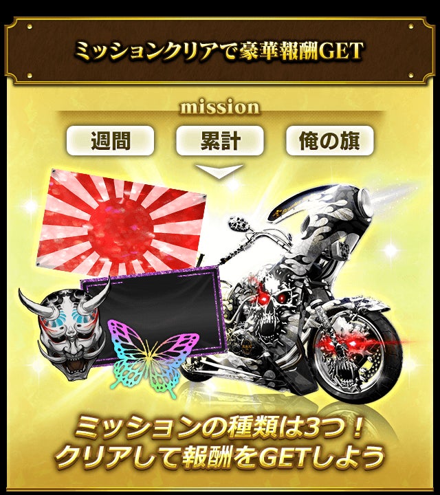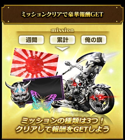 記念バイク「喧嘩屋ZERO」や、5000日記念メダルを集めて豪華報酬を獲得できるミッションも用意されています。