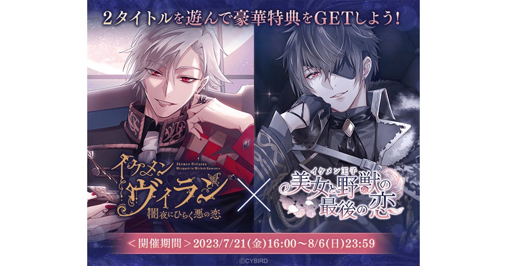 株式会社サイバードが手掛ける恋愛ゲーム「イケメンシリーズ」の10周年記念作品『イケメンヴィラン 闇夜にひらく悪の恋』と『イケメン王子 美女と野獣の最後の恋』が2023年7月21日からコラボキャンペーンを開始します。