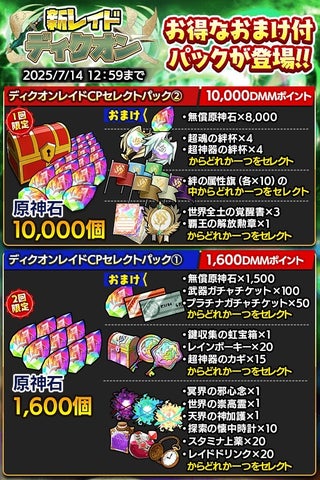 - 新レイドディクオンガチャ、夏の育成応援キャンペーンガチャ、期間限定パックが登場