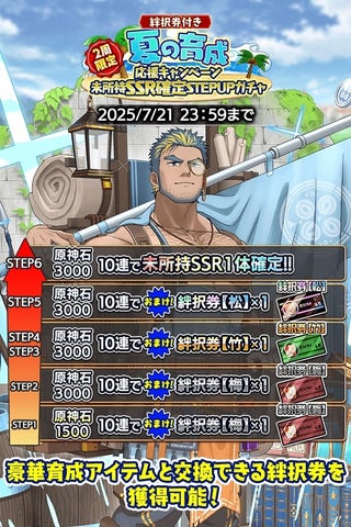 夏の育成応援キャンペーンでは、ランクと魂友のレベルアップを支援するイベントや、限定ログインボーナス、ガチャなどが開催されます。