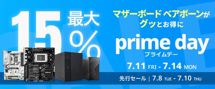 - Amazonプライムデー先行セールにて、ASRock製品が最大15%オフ。