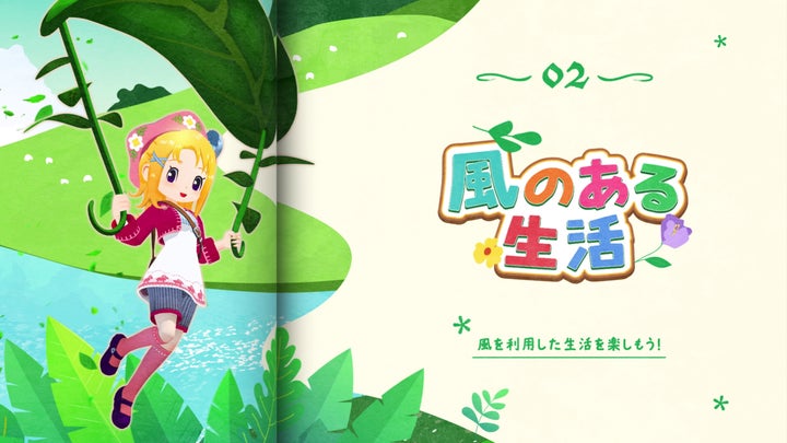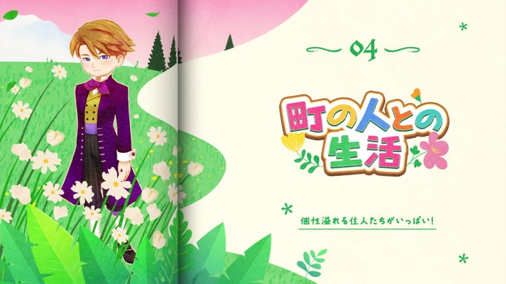 今回の映像では、牧場経営や住人との交流に加え、「バザール」や「風」を使った要素など、ゲームの魅力を5つのパートに分けて紹介している。
